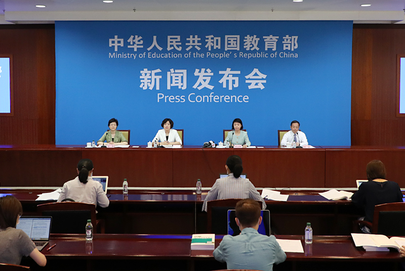 教育部新闻发言人续梅主持发布会。(中国教育报记者 张劲松/摄)